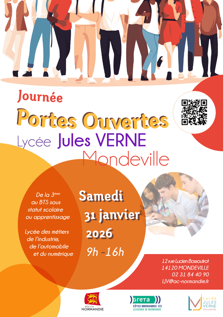 Journée Portes Ouvertes Samedi 31 janvier 2026 Nous aurons le plaisir d’accueillir le public lors de notre journée « Portes ouvertes » du lycée, qui aura lieu le samedi 31 janvier 2026, de 9h à 16h. Plus de renseignements par mail à LJV@ac-normandie.fr ou en appelant au 02 31 84 40 90.